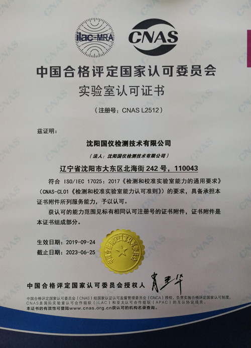 沈陽國儀檢測技術(shù)有限公司通過“CNAS”監(jiān)督評審