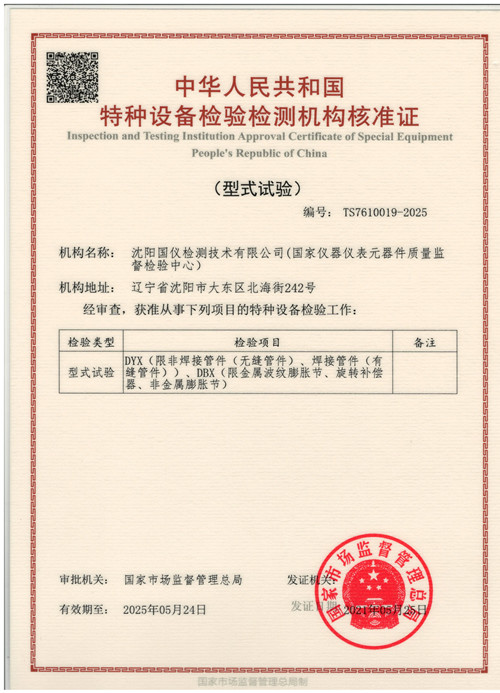 • 型式試驗機構(gòu)證書