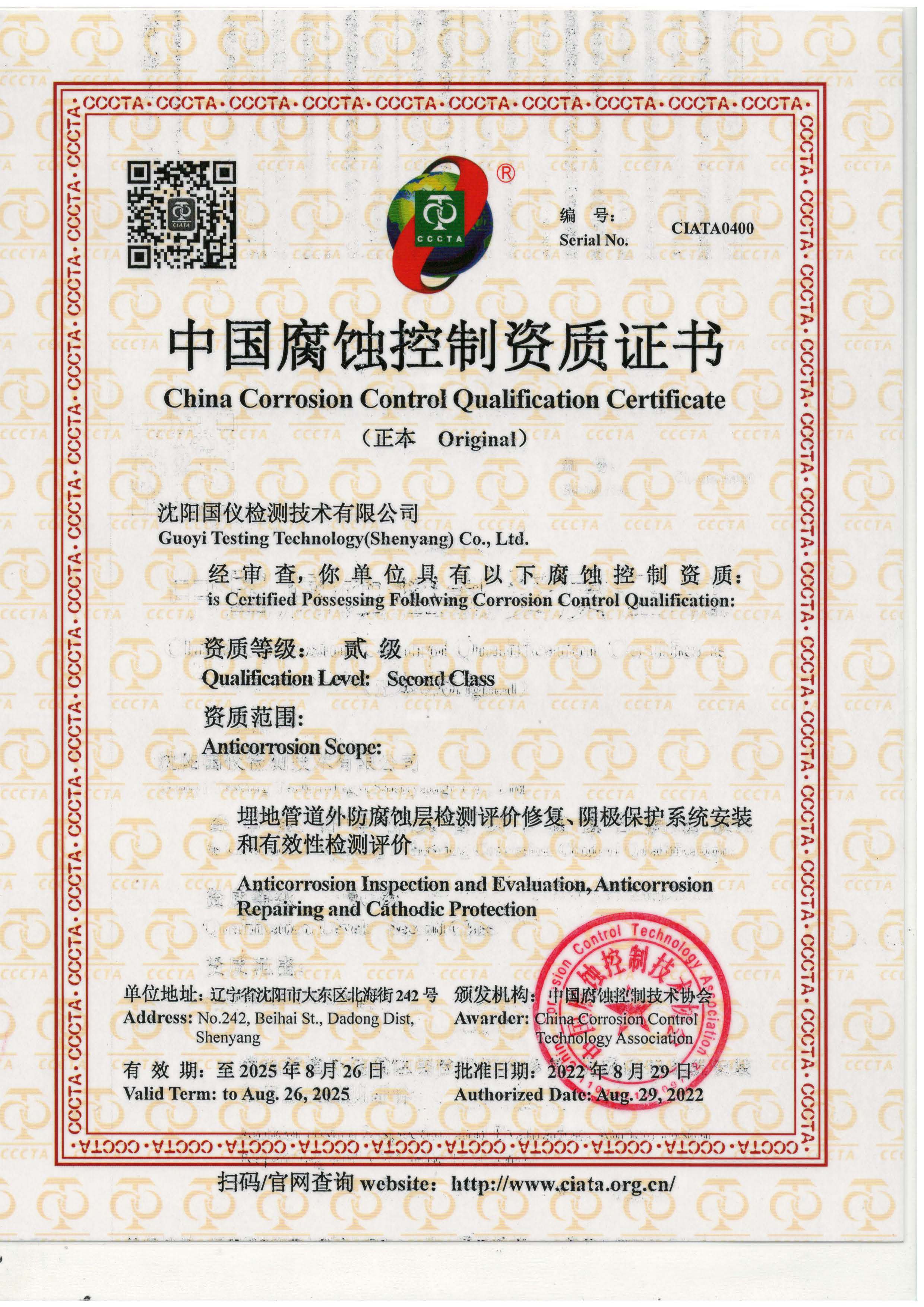 • 防腐資質(zhì)證書